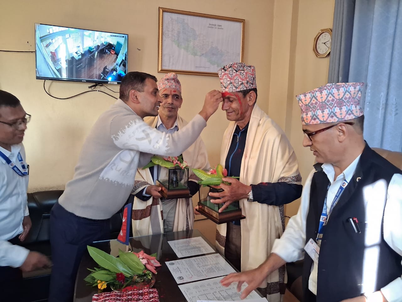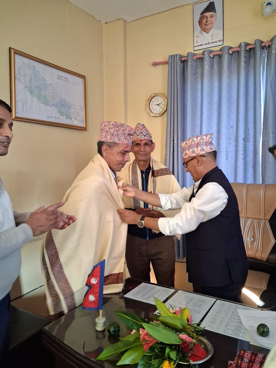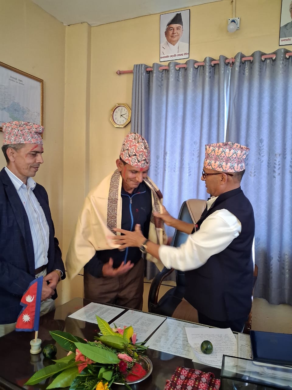 हल्कारा श्री पदमराज पौडेल र हुलाकी श्री हुतराज शर्माको सेवा निवृतको अवसरमा मायाको चिनो दिने क्रममा लिइएका तस्वीरहरु